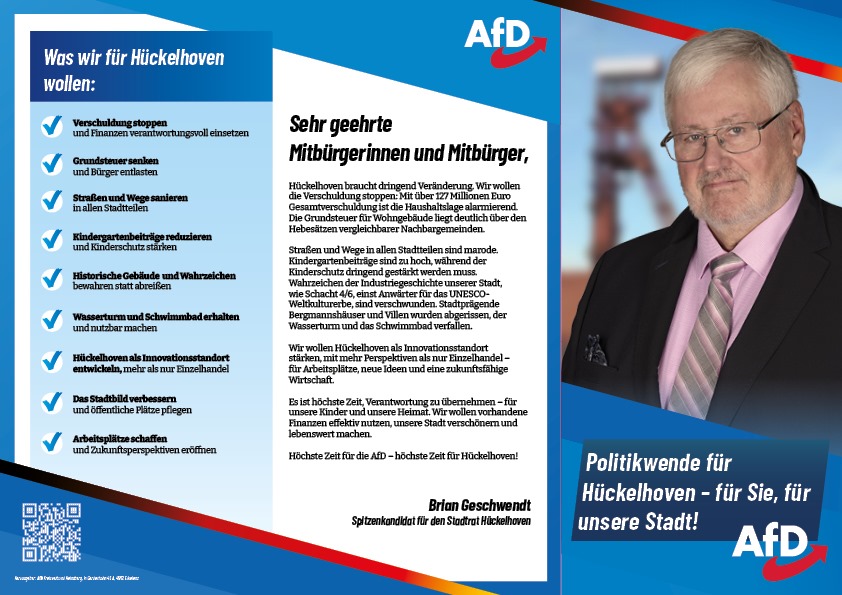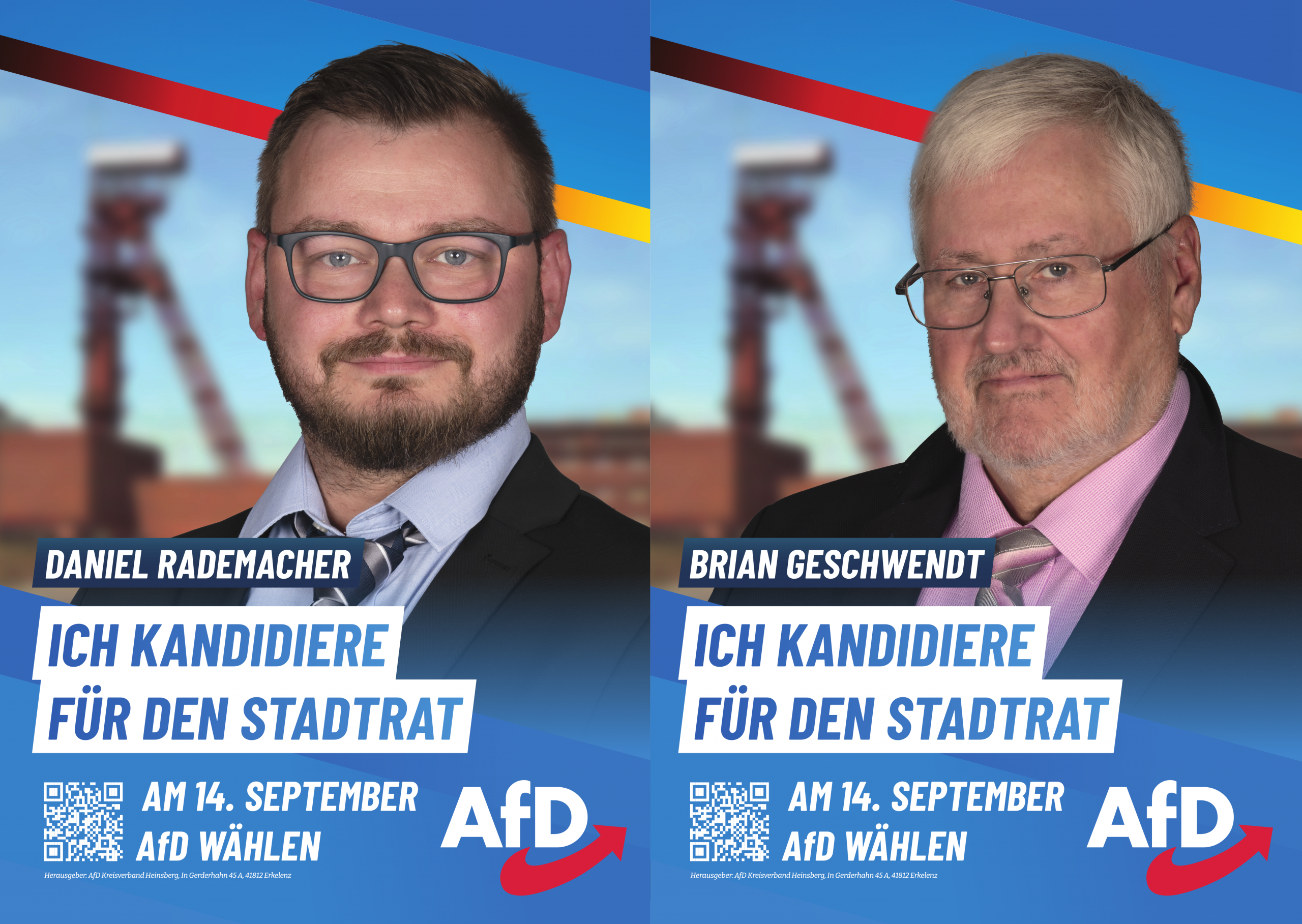 Kommunalwahl am 14.09.2025, die Wende im Westen Unsere Spitzenkandidaten für die Stadt Hückelhoven. Brian Geschwendt, Daniel Rademacher
